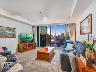 Accommodation: Youll be truly dazzled by the magnificent space and breathtaking vistas of this 19th floor residence. Enjoy new years eve fireworks and 24/7 views from the immense north-west facing balcony, expansive central lounge and dining, large kitchen with quality appliances including a dishwasher, both bedrooms that share the excellent views including the master bedroom which promises a walk-in robe and ensuite, and a central bathroom with a concealed laundry.