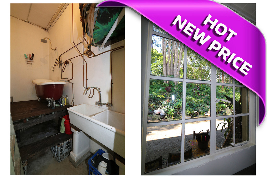 A compact but two storey unit, this space has it all for the keen artist or craftsperson. With thick masonry walls for insulation and privacy, it would also be the ideal space for a sound studio, photography space or similar cultural pursuit. There is a shop-front style space as you enter the unit, with an adjacent plumbed kitchen, workbench, and handy storage loft. At the rear of this entry is a timber staircase leading to a surprisingly spacious second storey with raked ceiling and exposed metal beams. All spaces are window-laden, light and airy, and offer peaceful views of the subtropical garden which contains local artists sculptures. These gardens line the beautiful wide creek which surrounds the whole building.